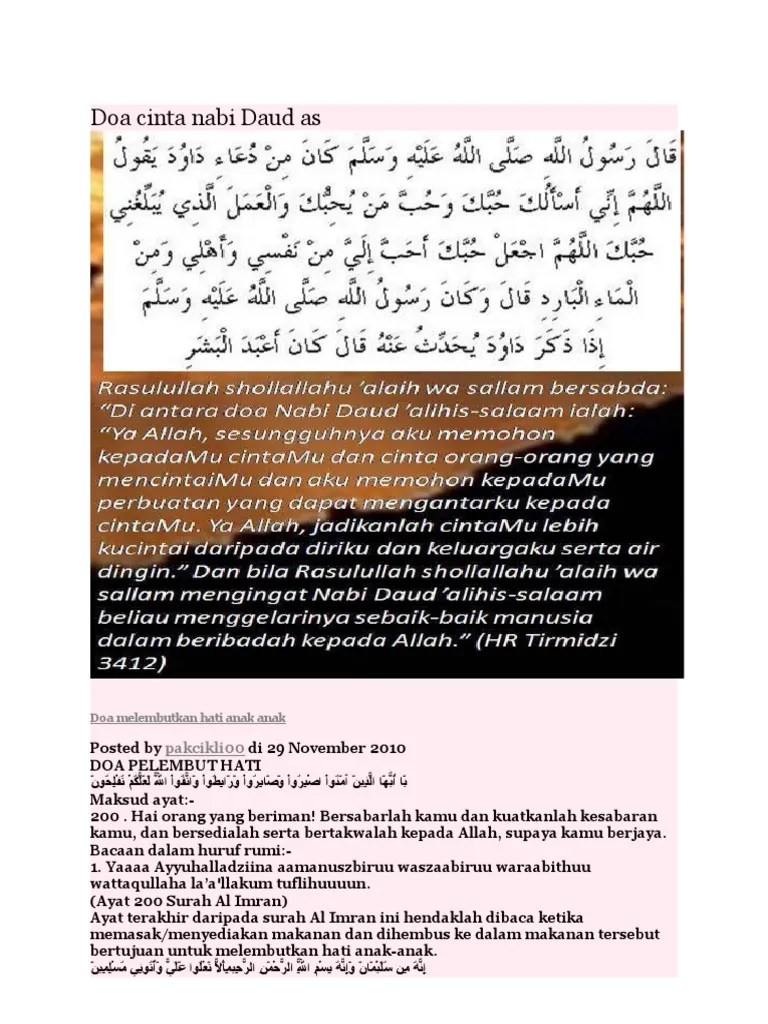 Menurut ahli sejarah islam, semasa saidina umar dalam perjalanan untuk membunuh rasulullah s.a.w., beliau bertembung dengan seseorang yang . Dan jika engkau menyaringkan suara dengan doa permohonanmu, (maka yang demikian tidaklah perlu), kerana sesungguhnya allah mengetahui segala rahsia dan . Doa melembutkan hati anak yang degil dalam rumi: Orang lain dalam umah semua degil belaka. Read and learn surah taha in malay translation and transliteration to get allah's blessings. Kemudian baca doa pelembut hati di bawah (tulisan rumi) :